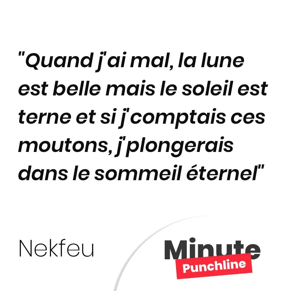 Minute Punchline / Punchline / Nekfeu / Quand j’ai mal, la lune est belle mais le soleil est terne et si j’comptais ces moutons, j’plongerais dans le sommeil éternel