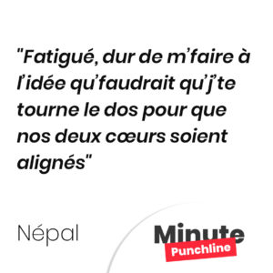 Fatigué, dur de m’faire à l’idée qu’faudrait qu’j’te tourne le dos pour que nos deux cœurs soient alignés