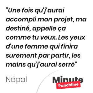 Une fois qu’j’aurai accompli mon projet, ma destiné, appelle ça comme tu veux. Les yeux d’une femme qui finira surement par partir, les mains qu’j’aurai serré