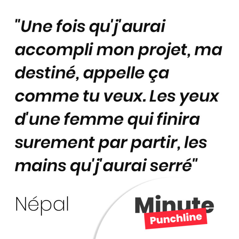 Une fois qu’j’aurai accompli mon projet, ma destiné, appelle ça comme tu veux. Les yeux d’une femme qui finira surement par partir, les mains qu’j’aurai serré
