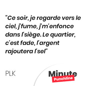 Ce soir, je regarde vers le ciel, j’fume, j’m’enfonce dans l’siège. Le quartier, c’est fade, l’argent rajoutera l’sel