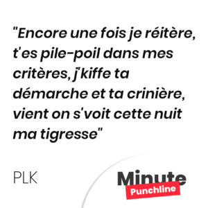 Encore une fois je réitère, t’es pile-poil dans mes critères, j’kiffe ta démarche et ta crinière, vient on s’voit cette nuit ma tigresse