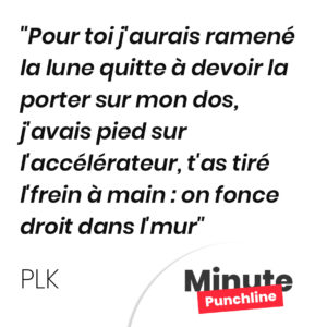 Pour toi j’aurais ramené la lune quitte à devoir la porter sur mon dos, j’avais pied sur l’accélérateur, t’as tiré l’frein à main : on fonce droit dans l’mur