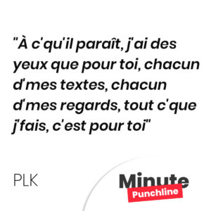 À c’qu’il paraît, j’ai des yeux que pour toi, chacun d’mes textes, chacun d’mes regards, tout c’que j’fais, c’est pour toi
