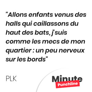 Allons enfants venus des halls qui caillassons du haut des bats, j’suis comme les mecs de mon quartier : un peu nerveux sur les bords