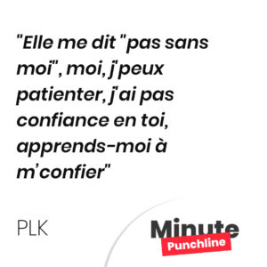 Elle me dit « pas sans moi », moi, j’peux patienter, j’ai pas confiance en toi, apprends-moi à m’confier