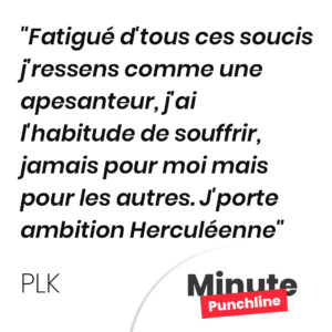 Fatigué d’tous ces soucis j’ressens comme une apesanteur, j’ai l’habitude de souffrir, jamais pour moi mais pour les autres. J’porte ambition Herculéenne