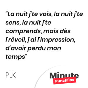 La nuit j’te vois, la nuit j’te sens, la nuit j’te comprends, mais dès l’réveil, j’ai l’impression, d’avoir perdu mon temps