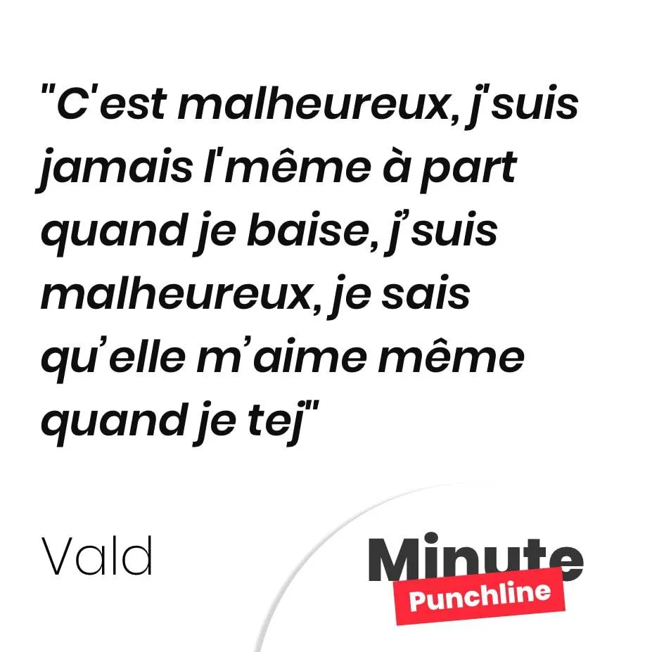 Minute Punchline / Punchline / Vald / C’est malheureux, j’suis jamais l’même à part quand je baise, j’suis malheureux, je sais qu’elle m’aime même quand je tej